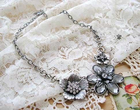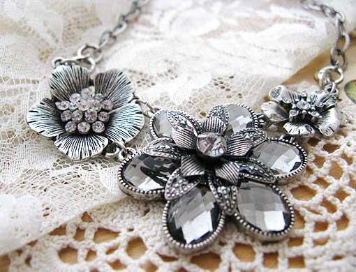 Floral Silver & Crystal Necklace measures approx 19.5 inches in length