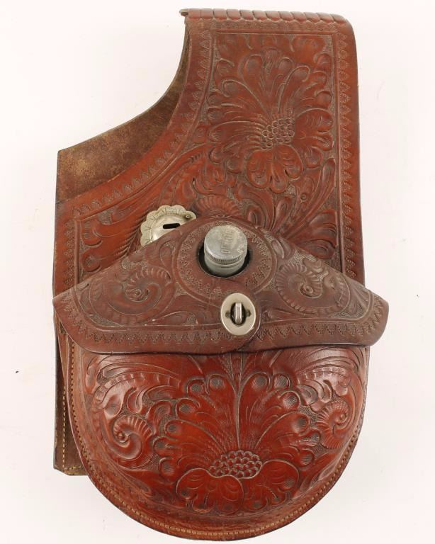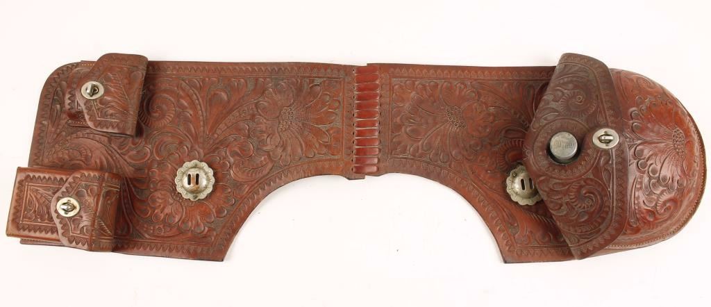 With holder for canteen and cartridge holders, unmarked, beautiful tooling. In good condition.