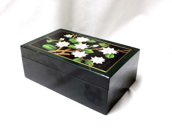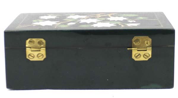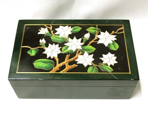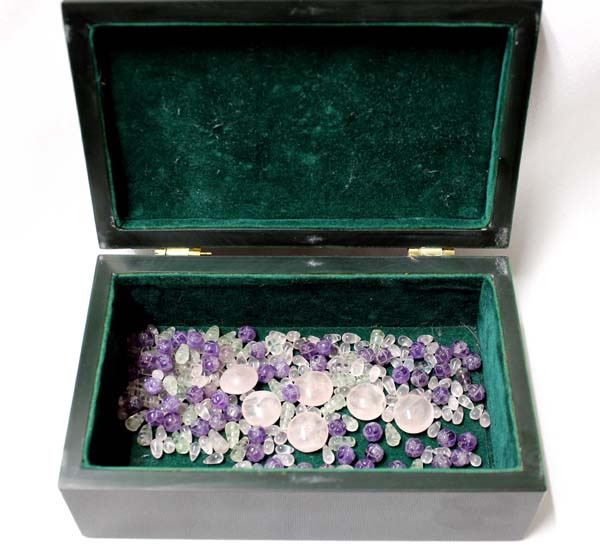 Floral Trinket Box with Rose Quartz & Carved Amethyst Beads, measures 2.5'' x 4'' x 6'', largest bead measures 5/8''D