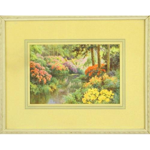 Warm summer sunlight, the bright colors of flowers, and the smooth transitioning tones and values of their reflections in the still, calm water of a river make this print a very desirable and attractive picture. Matted in an ivory colored mat and framed in a ivory frame this picture gives pleasant feelings as well as being a masterful display of the talent of the artist to capture details and color. This piece measures 11.75? x 14.75?.