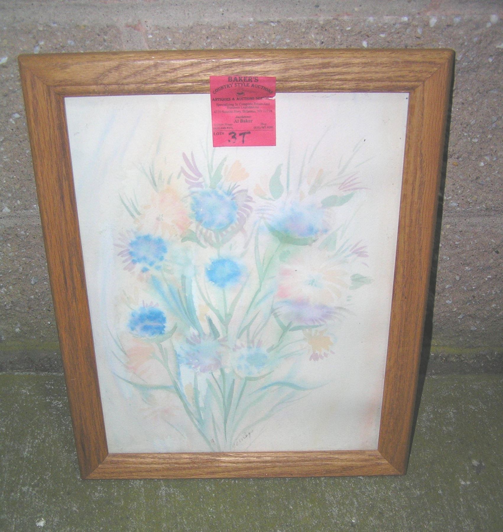 Floral artist signed water color in oak frame, est. value $35.00-$40.00 moving and storage co. seized merchandise