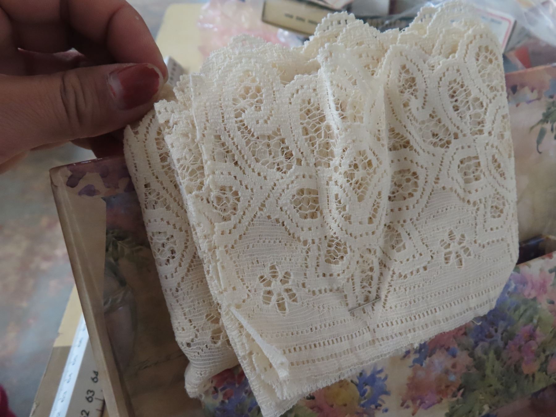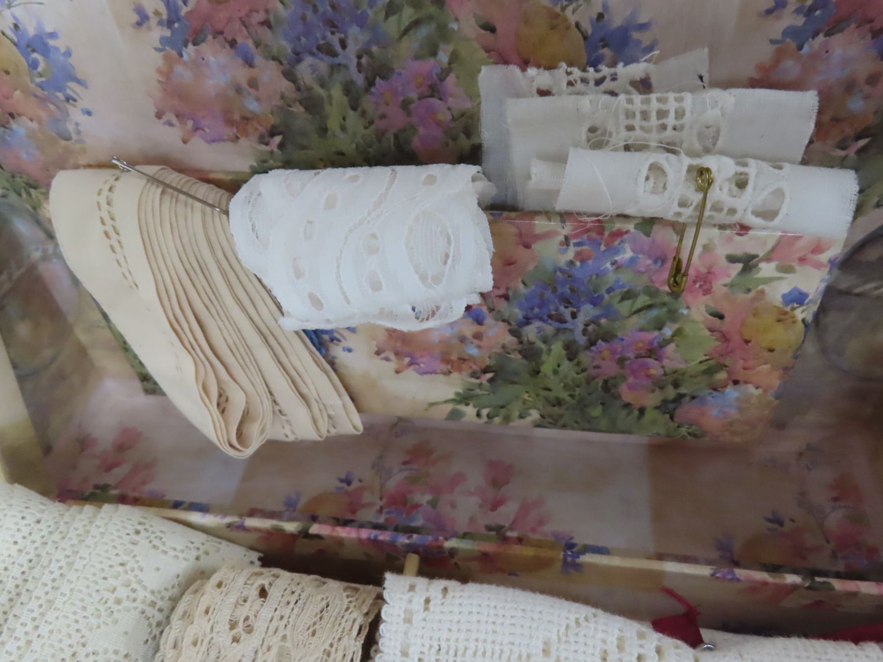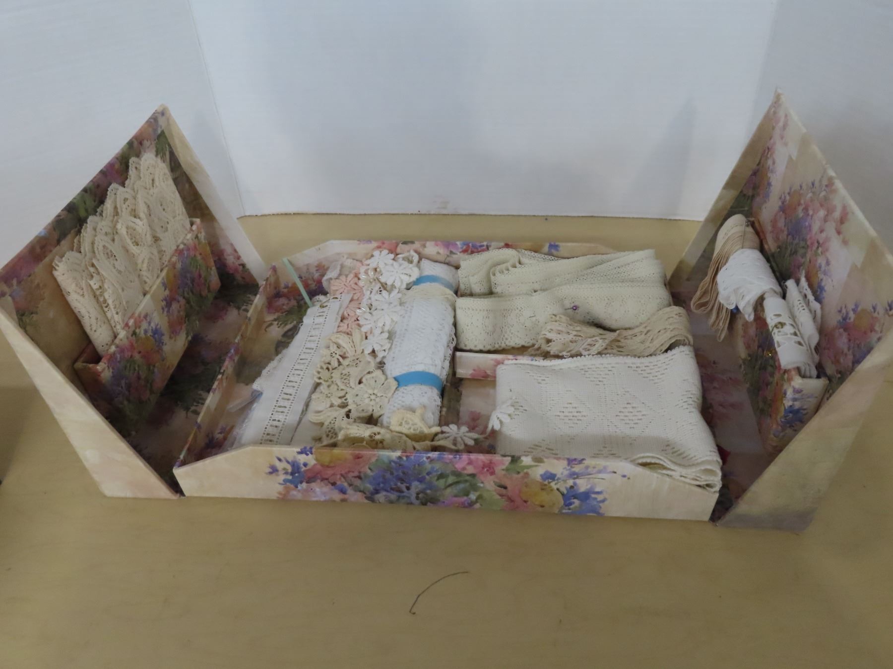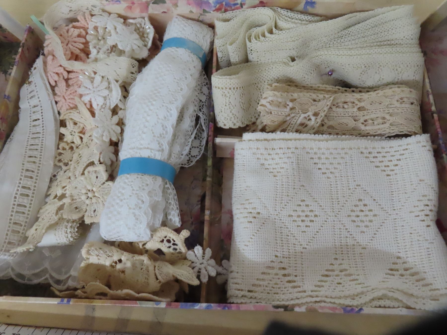 Floral box of vintage machine lace and trim