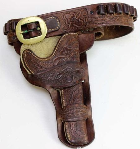 Floral carved double loop holsterwith scarce E. Gottschalk Faith SD stamp, condition is very good, stamped under the tongue. Est. 475-650