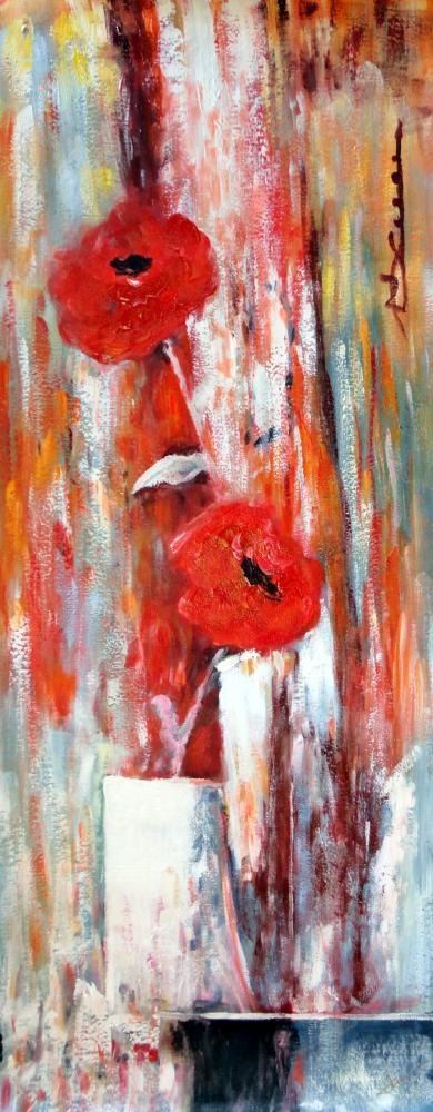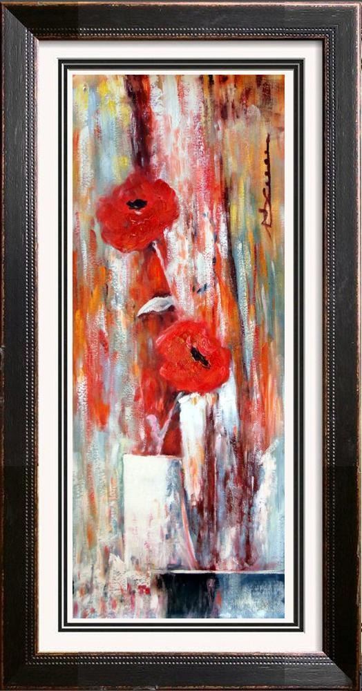 Janier | Title of Art: Floral in Vase II | Medium: Hand Signed Original Acrylic on Canvas | Edition #: Original | Unframed Size: 50 x 20 | Framed Size: Offered Unframed. Framing presentation if shown is for concept only. If you need assistance with custom framing, call the experts at ArtForSale