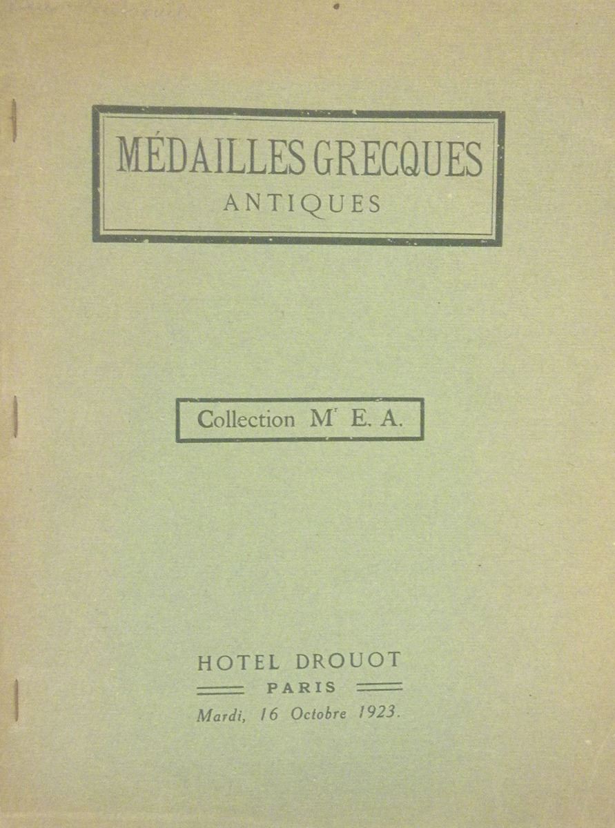 Florange, Jules, and Louis Ciani. MÉDAILLES GRECQUES ANTIQUES. COLLECTION DE MR E.A. Paris, 16 octobre 1923. 8vo, original printed card covers. 13, (3) pages; 98 lots; 2 fine plates. Very good or better. The first of two sales held by the firm that day, and quite rare. Spring 181.