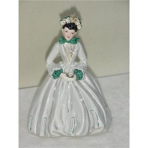 Florence Ceramics, Pasadena California figurine. 8-1/4" tall named "Sue-Ellen". Grey with green trim.