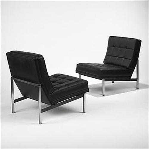 Florence Knoll Parallel Bar lounge chairs, pair Knoll USA, 1950s steel, leather 24.5 w x 30 d x 30.25 h inches Recently reupholstered in a fine leather.