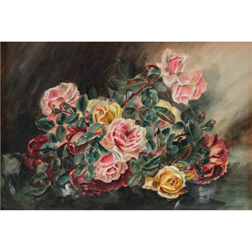 Florence McDaniel, Still Life of Roses, watercolo