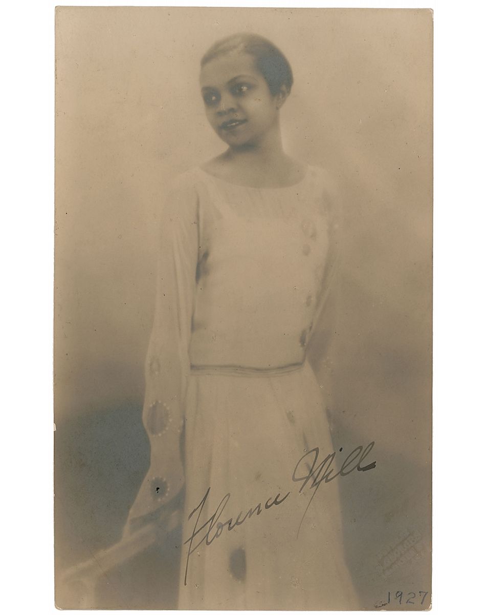 Cabaret signer (1896–1927) known as the ‘Queen of Happiness.’ Vintage matte-finish 3.25 x 5.25 postcard photo, signed in fountain pen. In fine condition, with photographer’s stamp and small notation to bottom right.