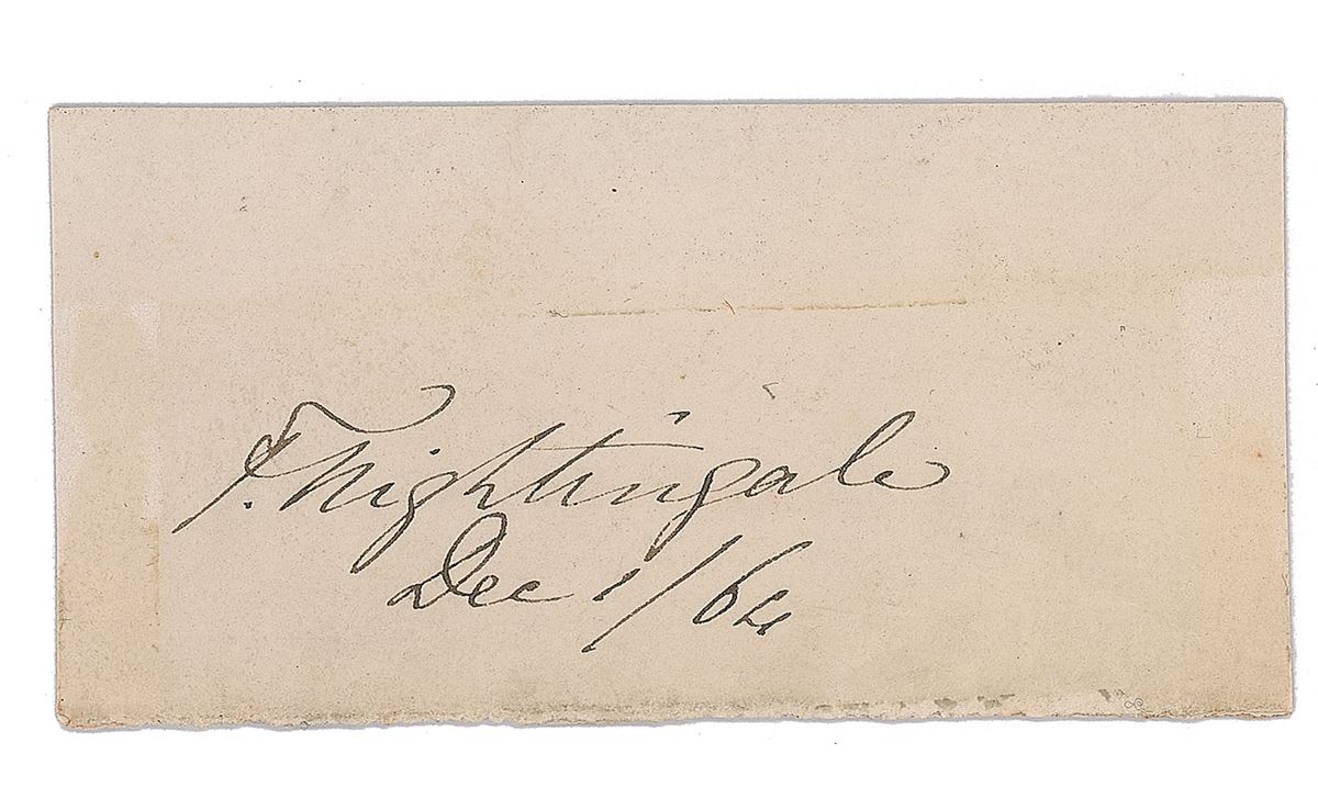 Ink signature, “F. Nightingale, Dec. 1/64,” on an off-white 3.25 x 1.5 slip affixed to a same-sized card. In fine condition, with trivial soiling and two small spots of surface loss.