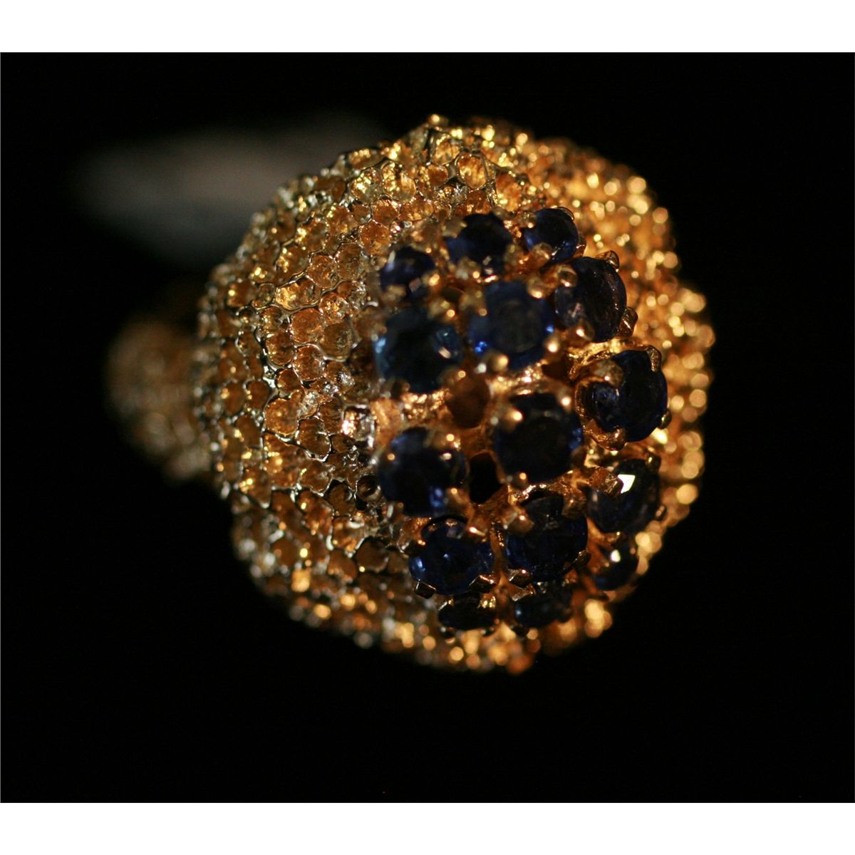 Florentine Finish Ring, 18k gold set with 15 sapphires, Gold content not marked, Weight 12.1 grams, ---2272051--,