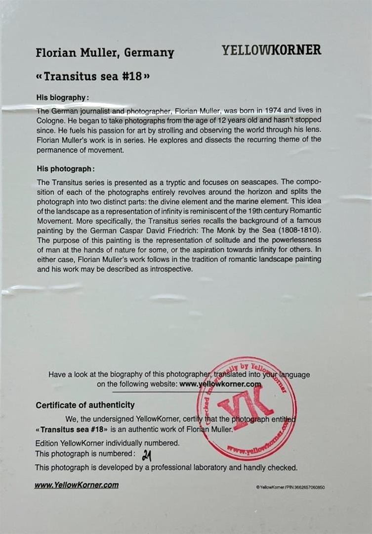 Florian Muller Germany Transitus Sea #18 YellowKorner Certified Photograph. Certificate of Authenticity from YellowKorner affixed to the back. Matted Dimensions 16"x20". Protected with Clear Mylar Sleeve.