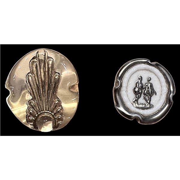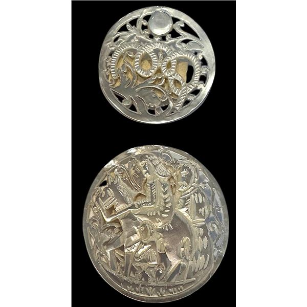 515 - A division one wood in metal buttonLion and Unicorn
