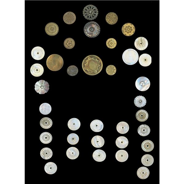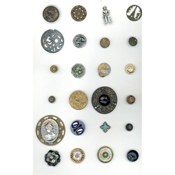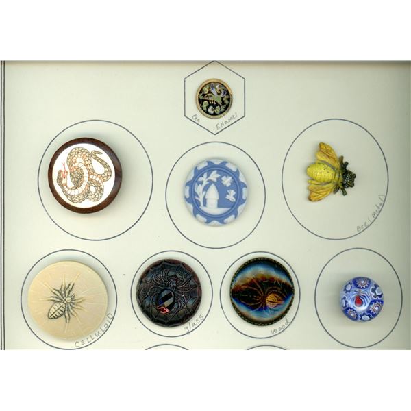 42 Small 19th century assorted material examples. Here is a card ready for competition. It includes a vast variety of materials including metals, pear