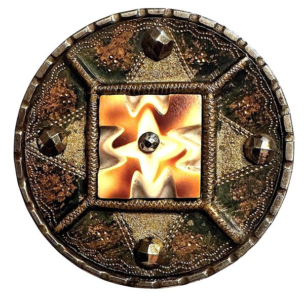 1 Large 18th century fine wood example with copper rim. This button may appear as a plain button but the quality of the wood and the beauty of this wo