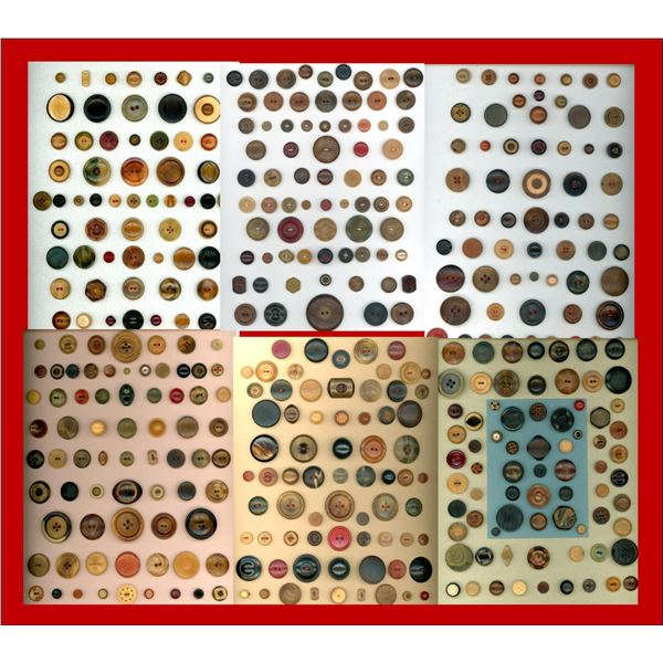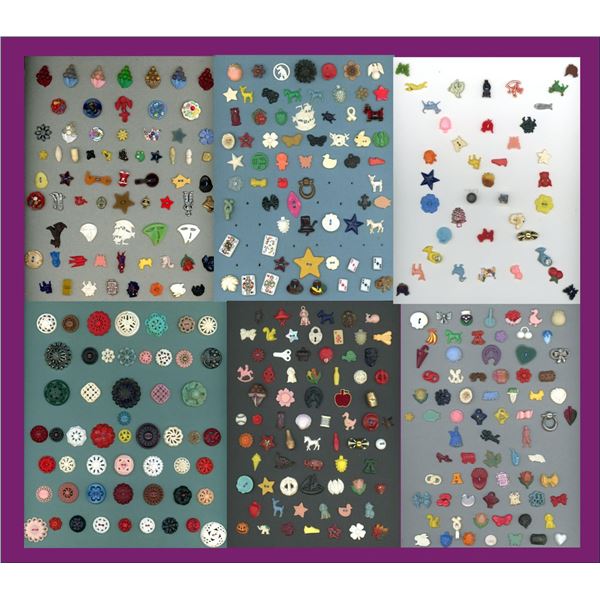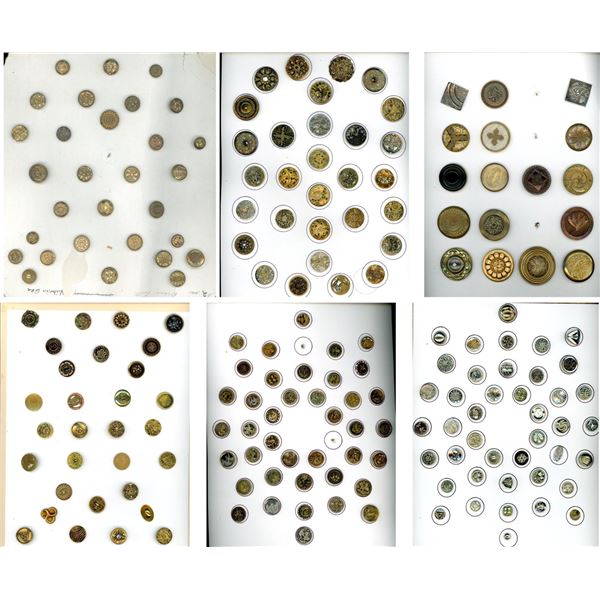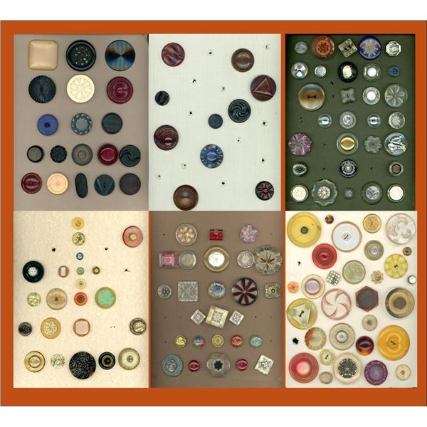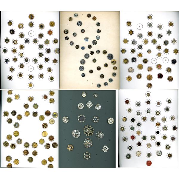 Collectors will find enamel, brass, and composition picture buttons featuring florals, classical motifs, and scenic designs, along with uniform and service related types that add historical depth. Assorted lots range from small and medium glass to premium singles, with many boards assembled for study and exhibition. The catalog also offers stud formats and specialty techniques that demonstrate the range of materials and manufacturing.
