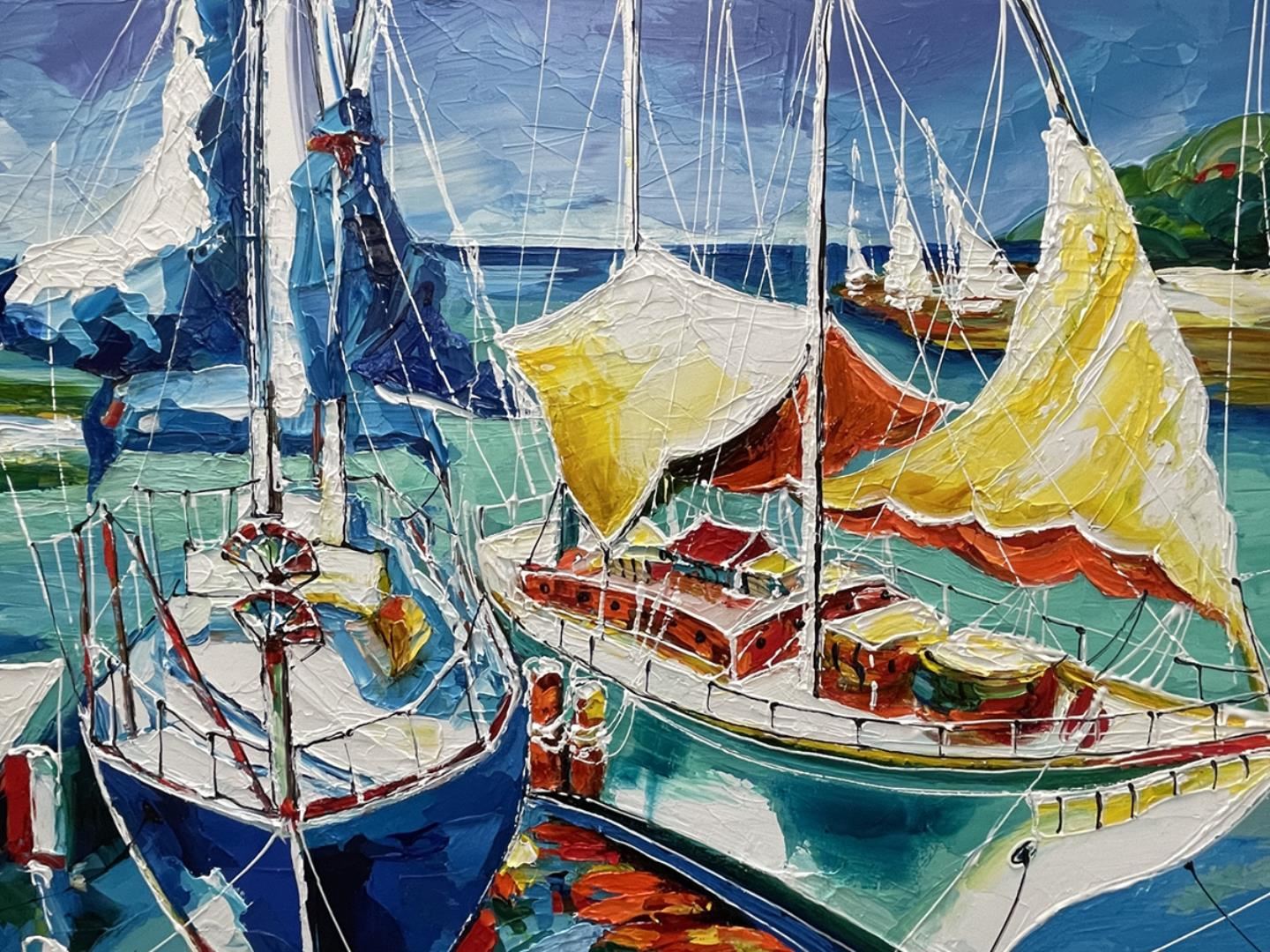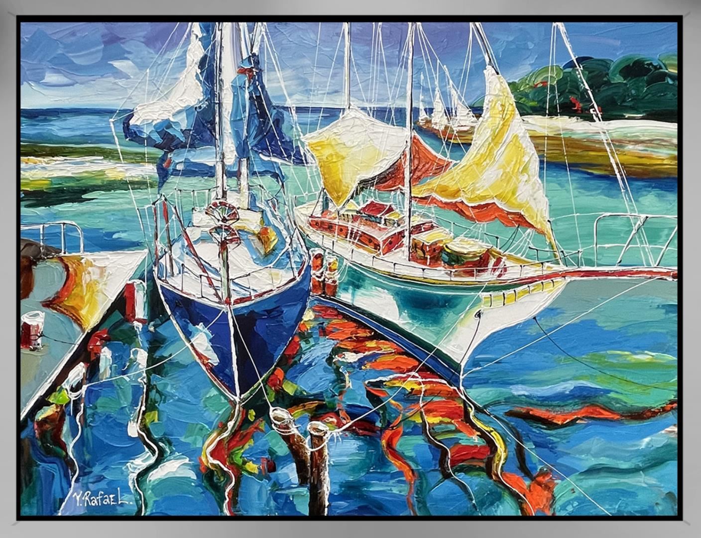 Brilliant original acrylic on 36x38" canvas.signed by artist. Artwork comes with a certificate of authenticity. This artwork comes framed.