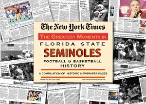 Commemorate the history of your favorite team with The New York Times Greatest Moments in Florida State Seminoles History! These are Genuine New York Times reprints that come in a full size newspaper format with 63 pages of New York Times coverage including a Special Color Section. Each Page Measures: 15W x 22L inches. Terrific memorabilia addition or gift idea for the avid sports fan in your life !