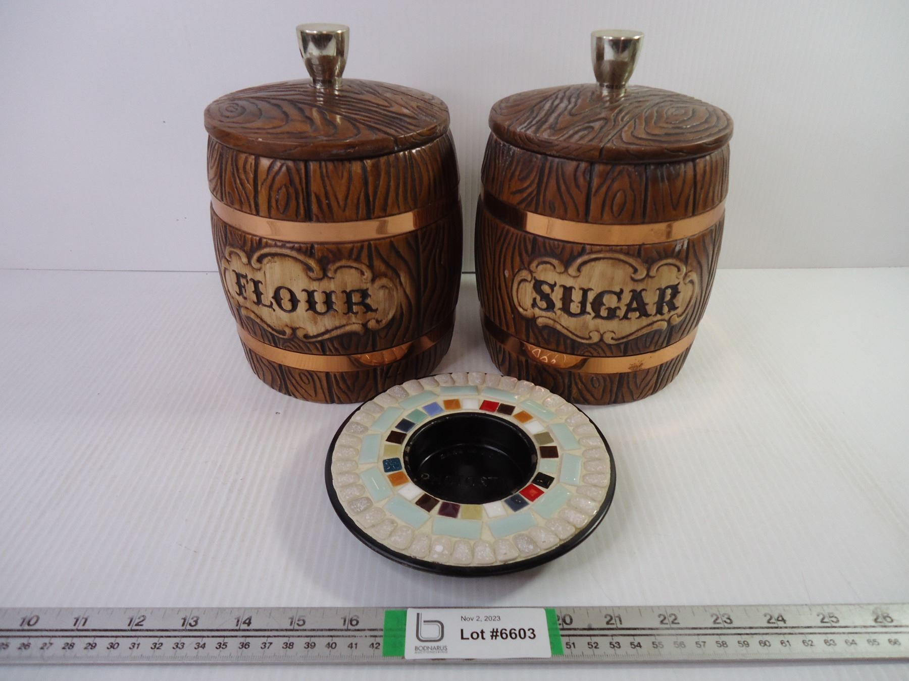 Flour and Sugar Ceramic Containers and Trinket Dish