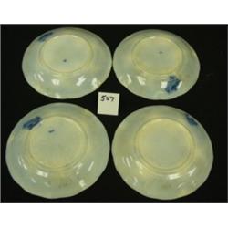 Flow Blue "Asiatic Pheasants" by T. Hughes & Son, England. Lot of 4 saucers. Saucers are 6" wide. Condition: All in good condition with some staining and underside glaze flaws.
