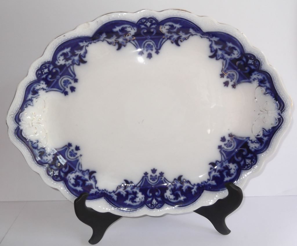 The Blue Danube Johnson Bros. England Flow Blue platter. Chip on rim. 17 3/4 inches x 13 inches.