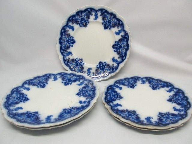 5 Flow blue plates, 3 -10 inch, 2- 9 inch.
