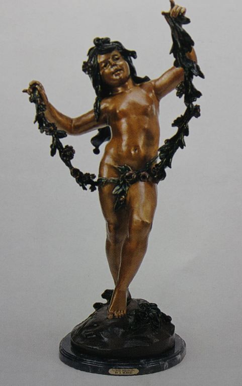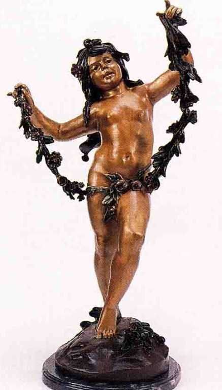 "Flower Arranging " Bronze Sculpture - After A. Moreau - Beautiful Color Patina - Mounted On A Fine Italian Marble Base - Beautifully Detailed - Signed - Mint Condition - 41"H X 16"W - Lost Wax Cast Bronze