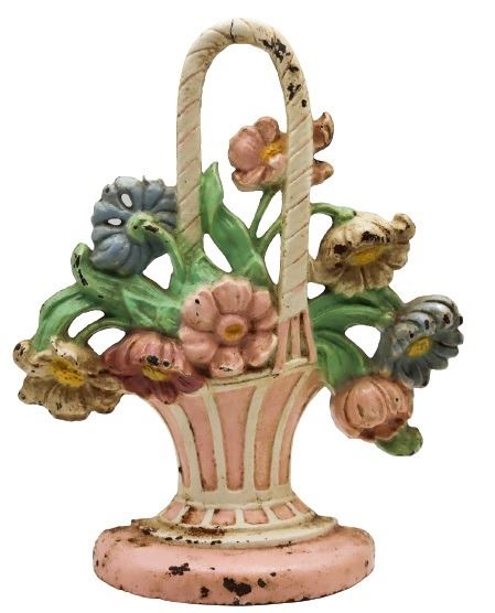 Flower basket door stop. Measurements: 8 1/2 x 7 x 2 in.