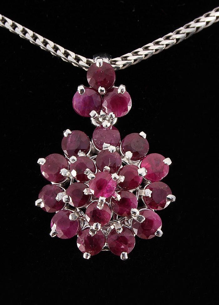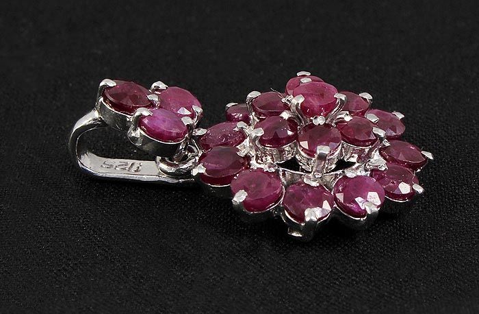 Flower Cluster 2.69g Sterling Silver Ruby Pendant 6.02c **|**|** Natural Ruby Corrundum Gemstone 14pcs Round 3.75mm & 7pcs Round 3.5mm in Silver Pendant; Size: 1.11x0.74 inches ; MSRP: $500