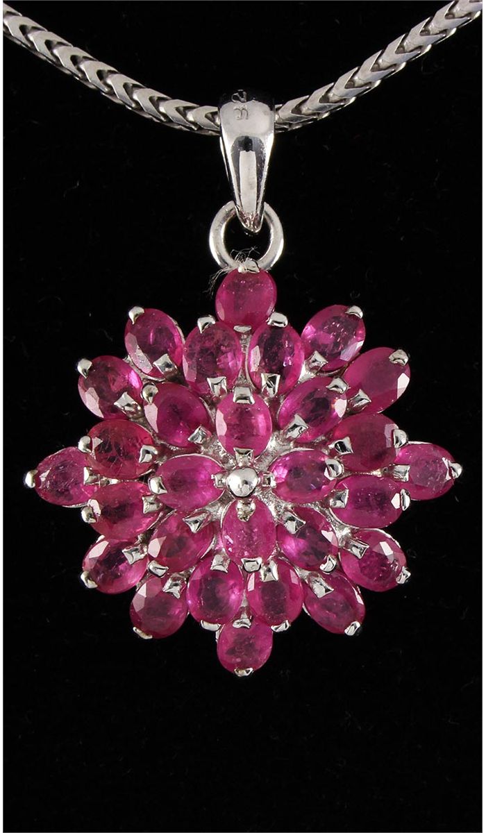 Flower Cluster 3.83g Sterling Silver Ruby Pendant 7.00c **|**|** Natural Ruby Corrundum Gemstone 28pcs Oval 4x3mm in Silver Pendant; Size: 1.29x0.96 inches ; MSRP: $700