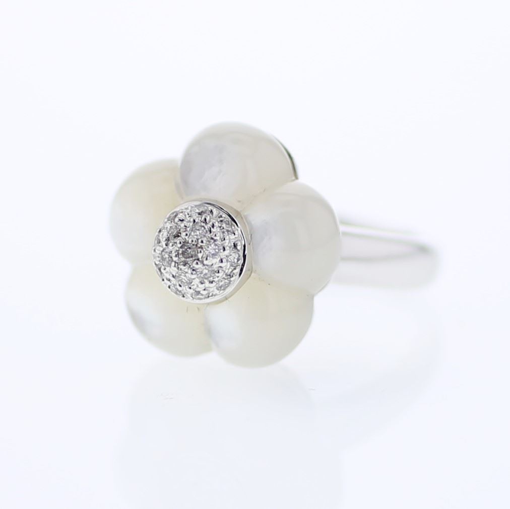 Flower Conch w/ Pave-set Diamond Ring in 18K White Gold