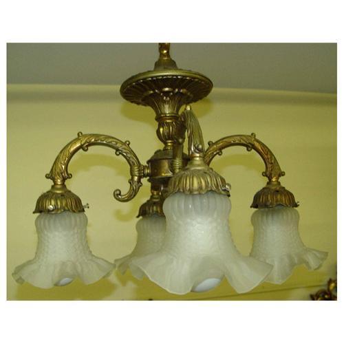 Flower Foliate Form Shade 4 Light Chandelier Fixture SIZE: 15 inches Height x 18 inches (diameters). CONDITION: Very good, Working.