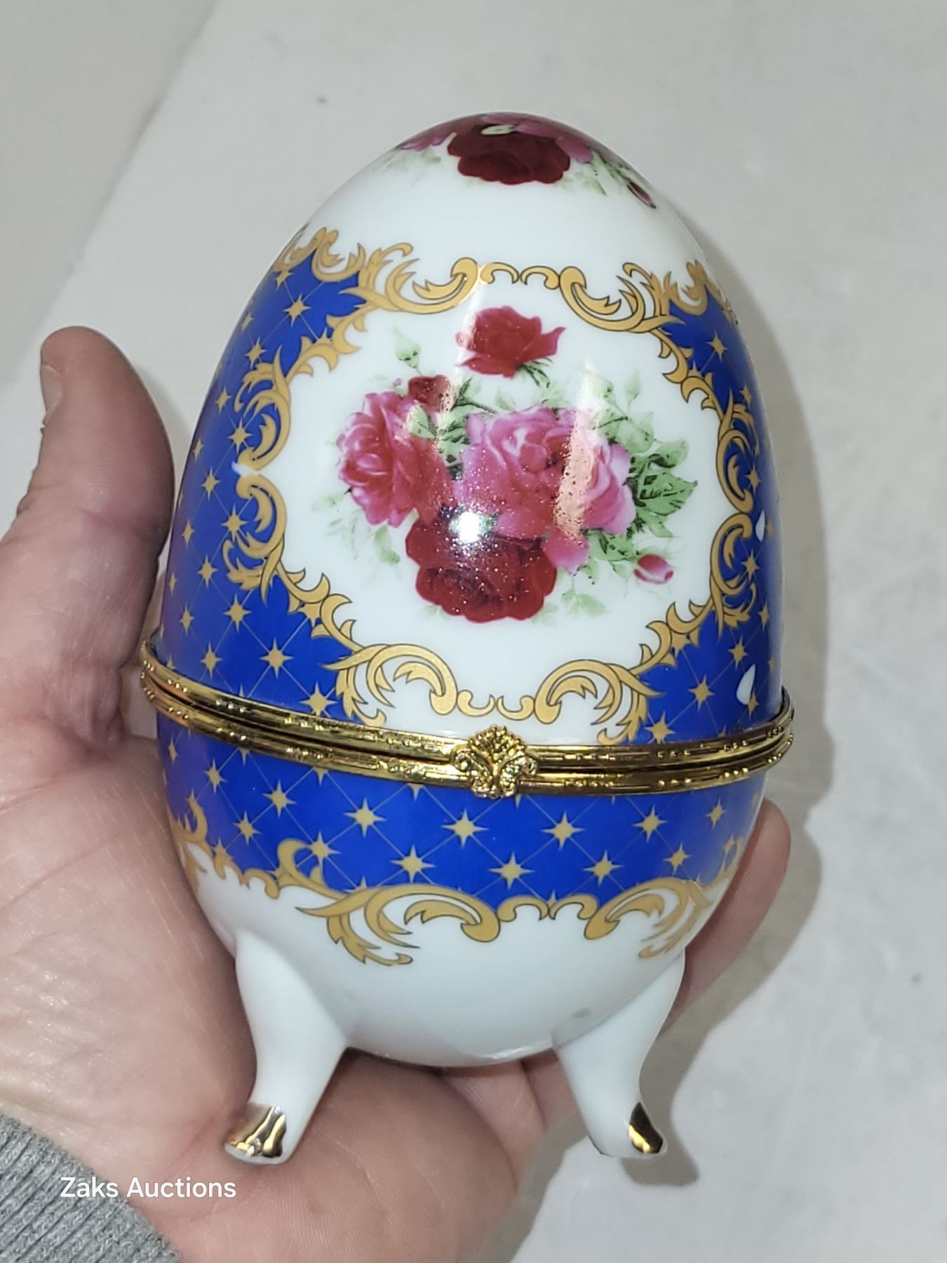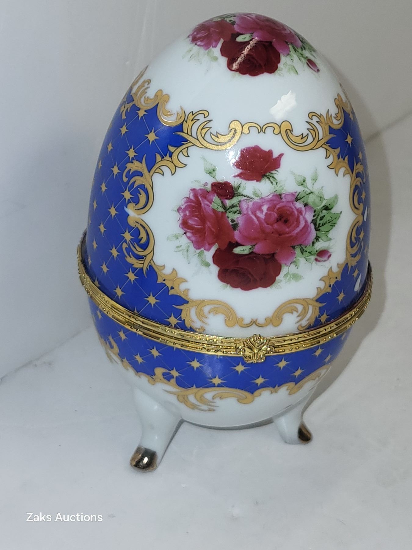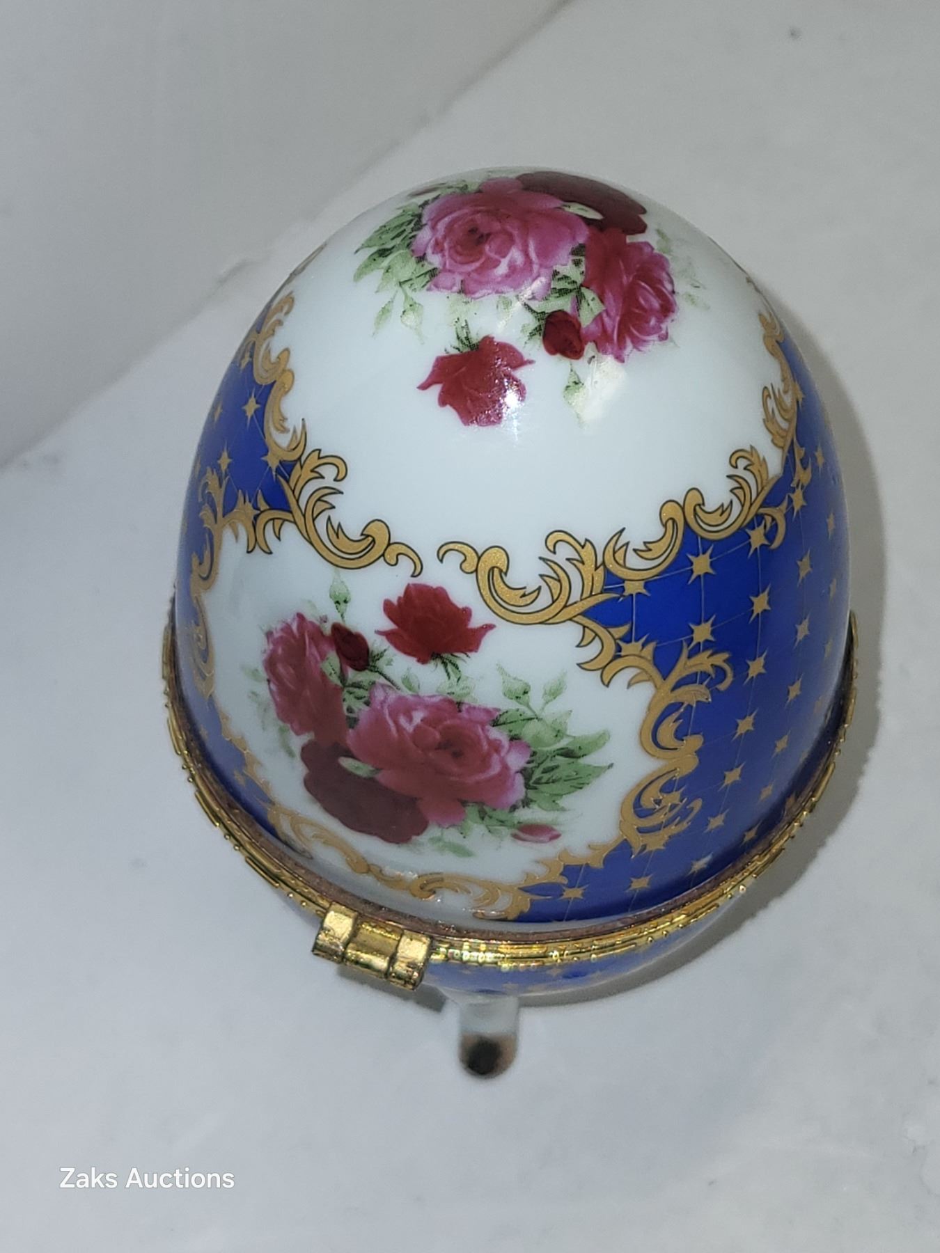 Flower Porcelain Egg Trinket Box with Gold Accent