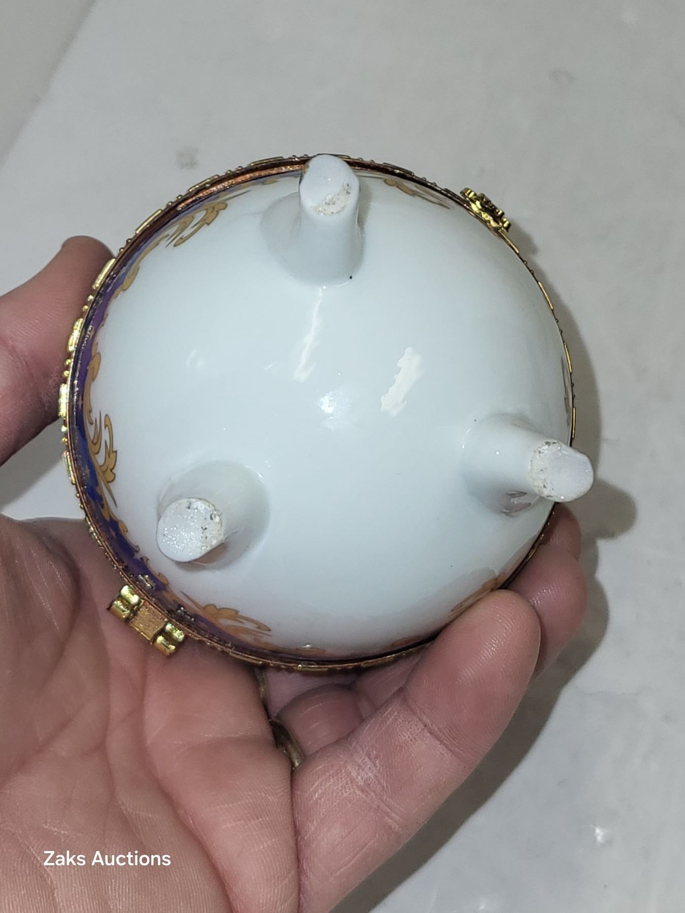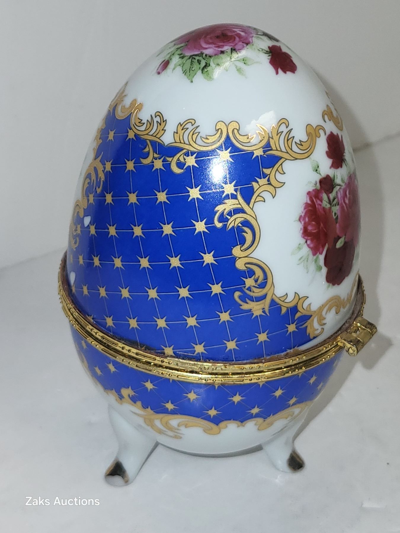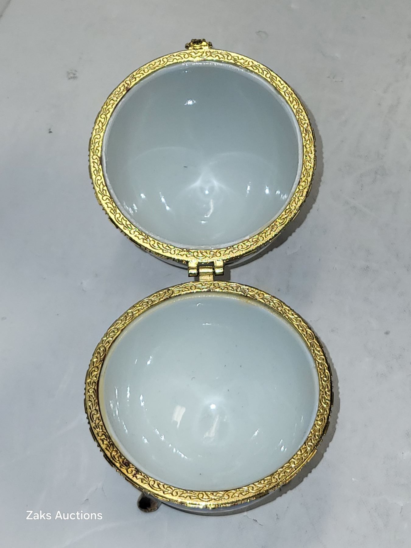 Flower Porcelain Egg Trinket Box with Gold Accent