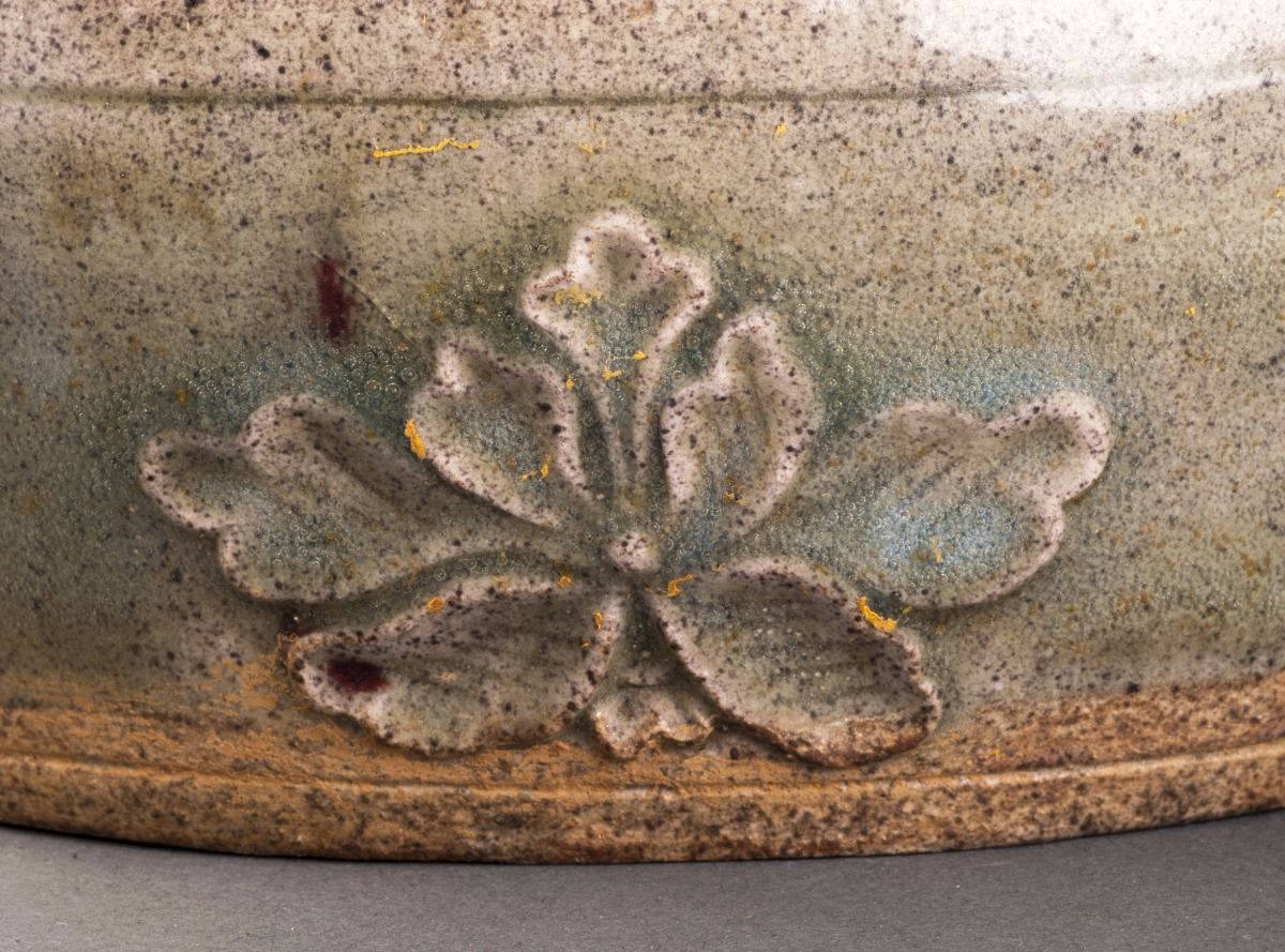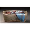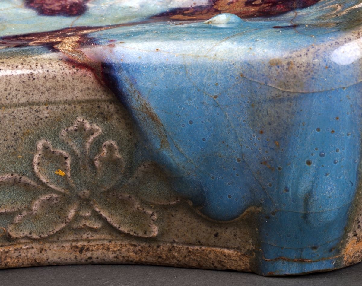 A Fine And Rare Porcelain Pillow In Good Condition, Within The Alternative Light Brown Tone. On The Straight Side Decorated With The Delicate Carved Rose Petal Pattern. Painted With The Natural Blue And Red GlazedFlower Patterns On The Main Surface.