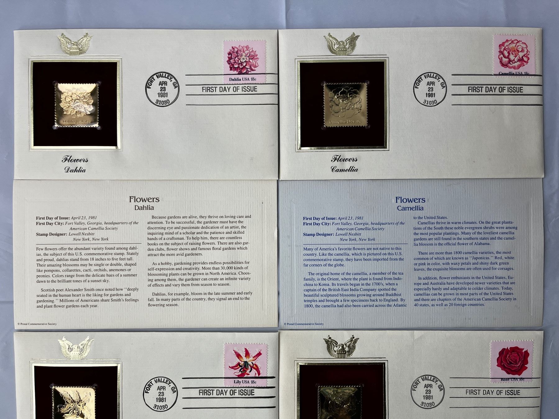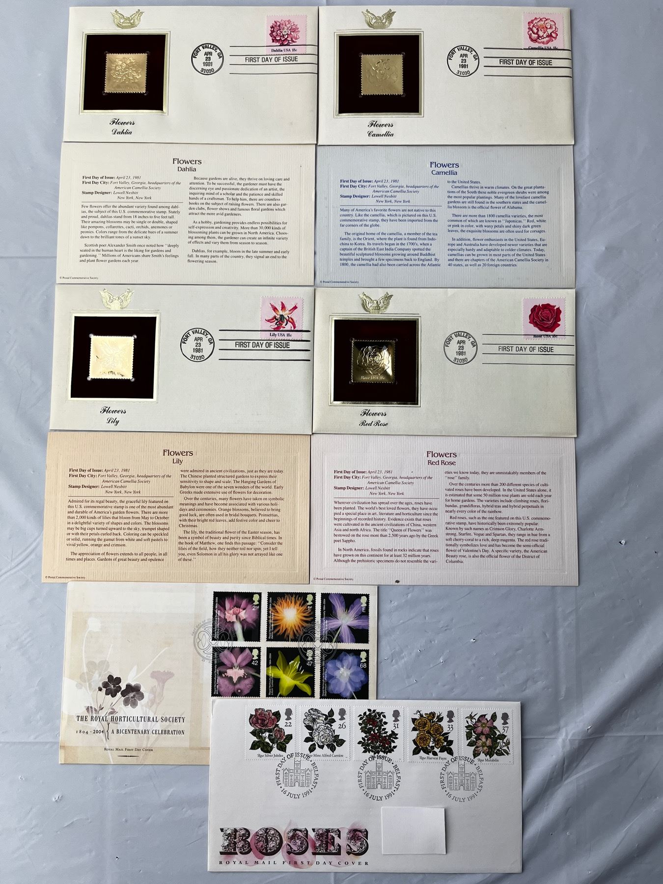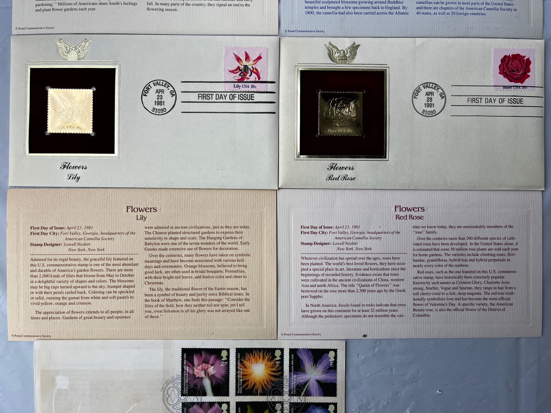 2 Royal First Day Covers, 4 Postal Commerative Society Stamps designed by Lowell Nesbitt