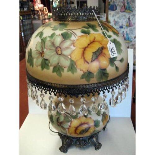 Vintage Flower Yellow & Green Lamp w/prisms