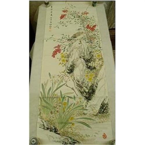 <tr><td>Title:Flower and Bird Scroll Painting by Kohan</td></tr>