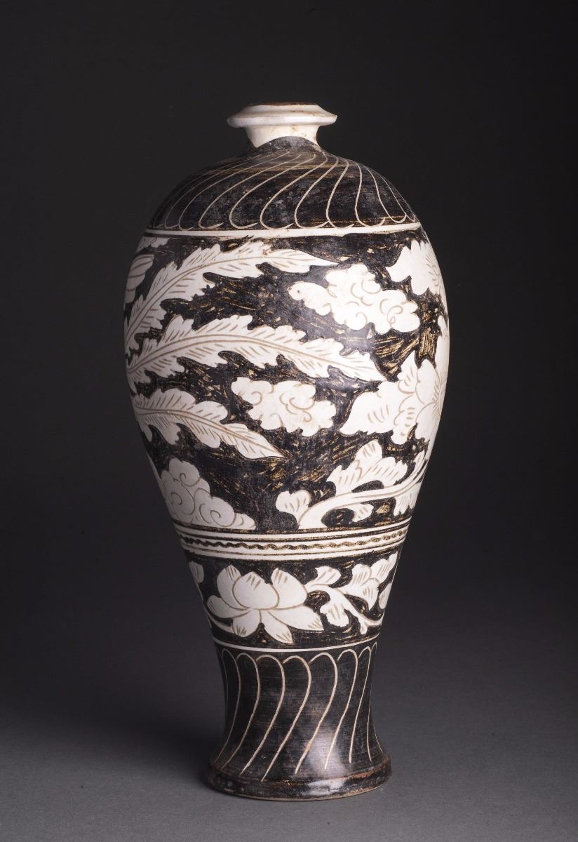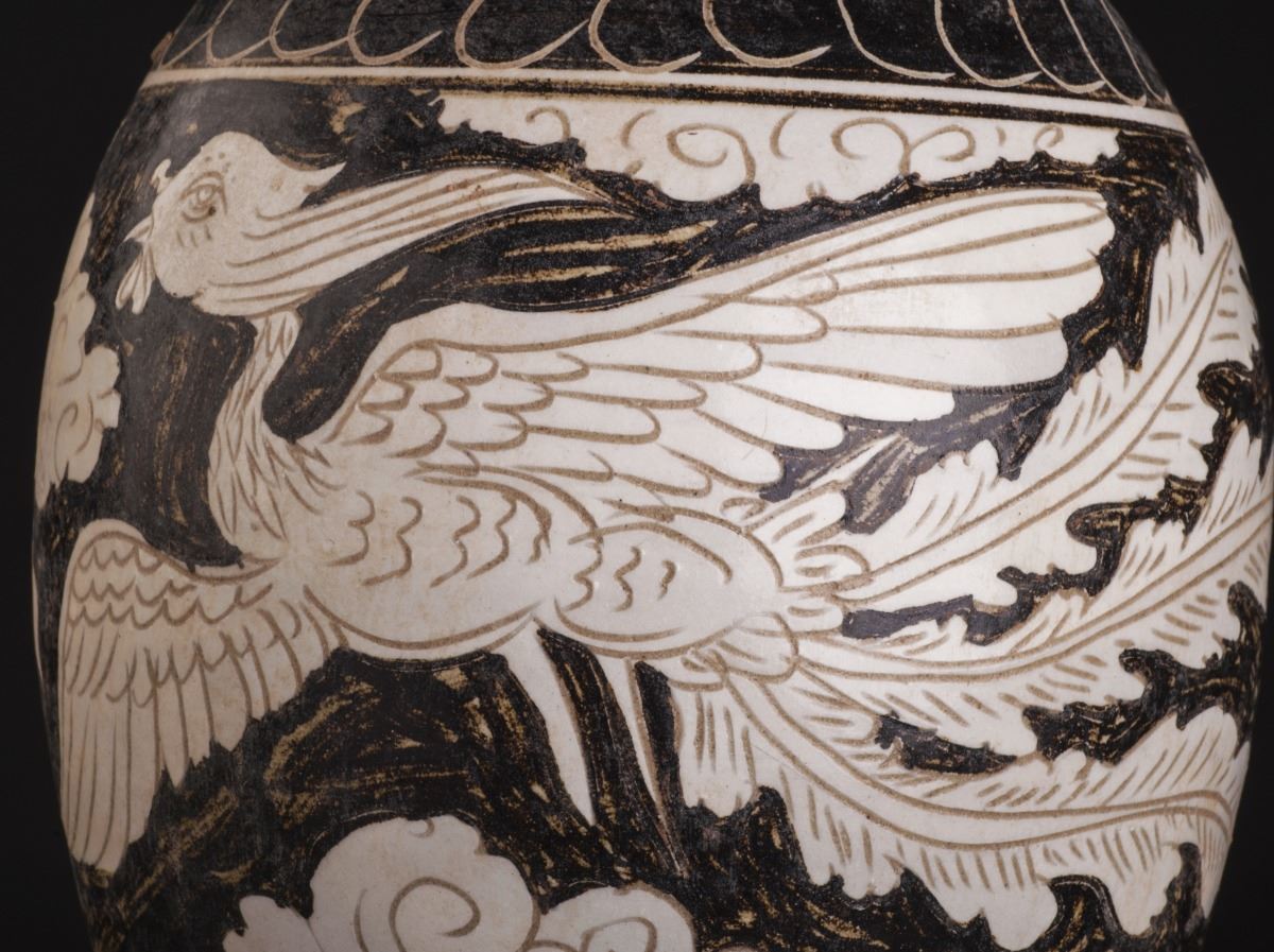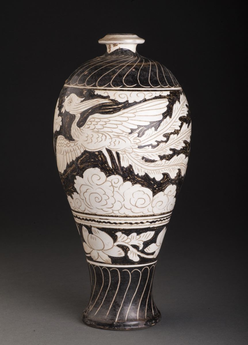 A Fine And Rare Black Glazed Porcelain Vase With Finely Potted Body, Which Raised To The Thin And Flat Foot. Painted With Delicate Designed Ascending Phoenix With Its Wings Opened. Along With The Vivid BloomingFlowers. With The Heavily Potted Chrysanthemum Incised On The Upper Body And The Foot Section.