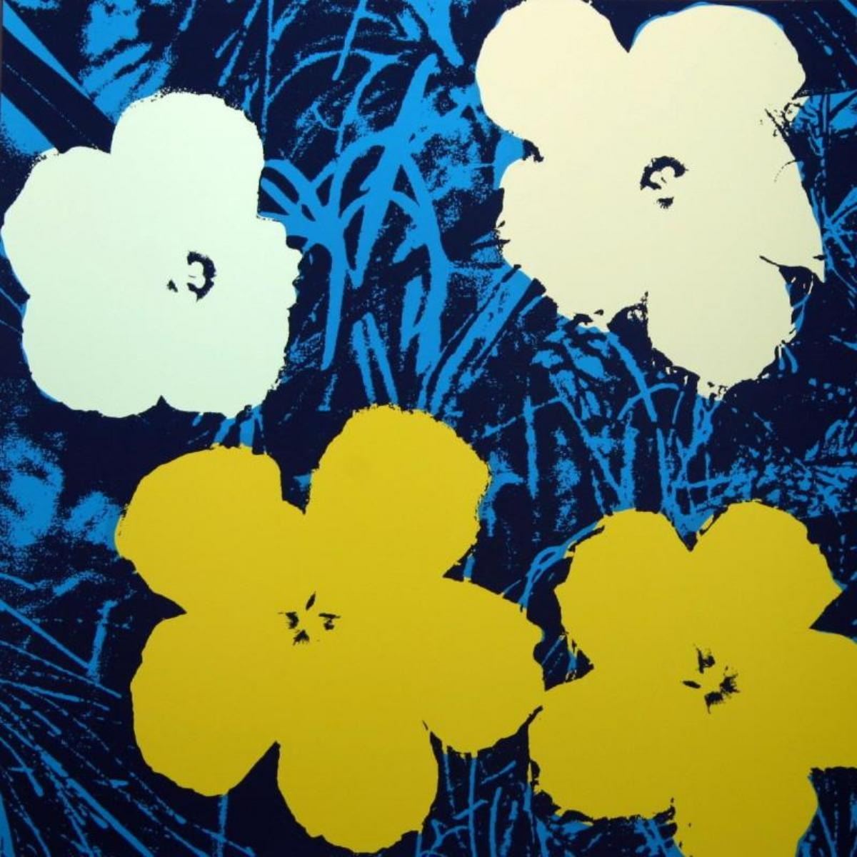 Flowers 11.72 by Warhol, Andy. "Flowers 11.72" is a silk screen print on paper (open edition) from Sunday B Morning featuring the works of Andy Warhol. The piece is stamped in blue on the back with "Published by Sunday B. Morning" and "fill in your own signature" and is accompanied by a certificate of authenticity. Measures approximately 36" x 36".