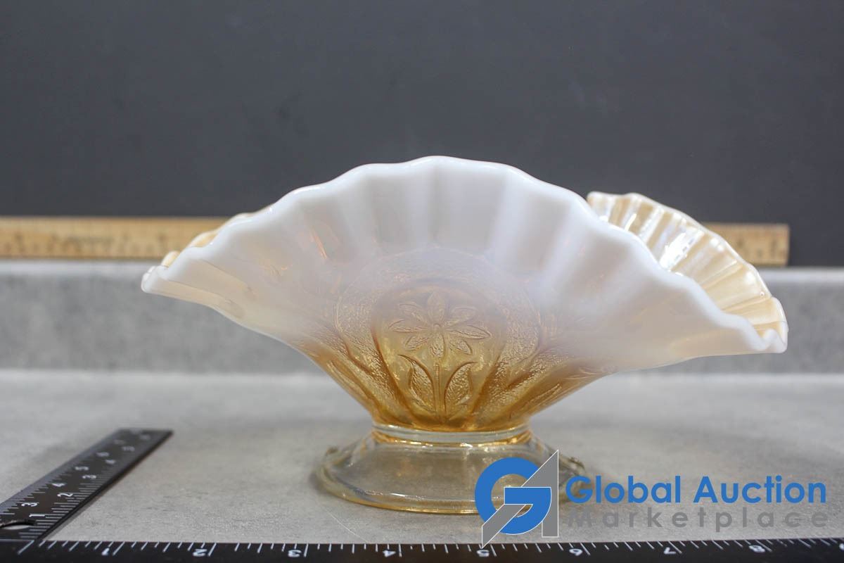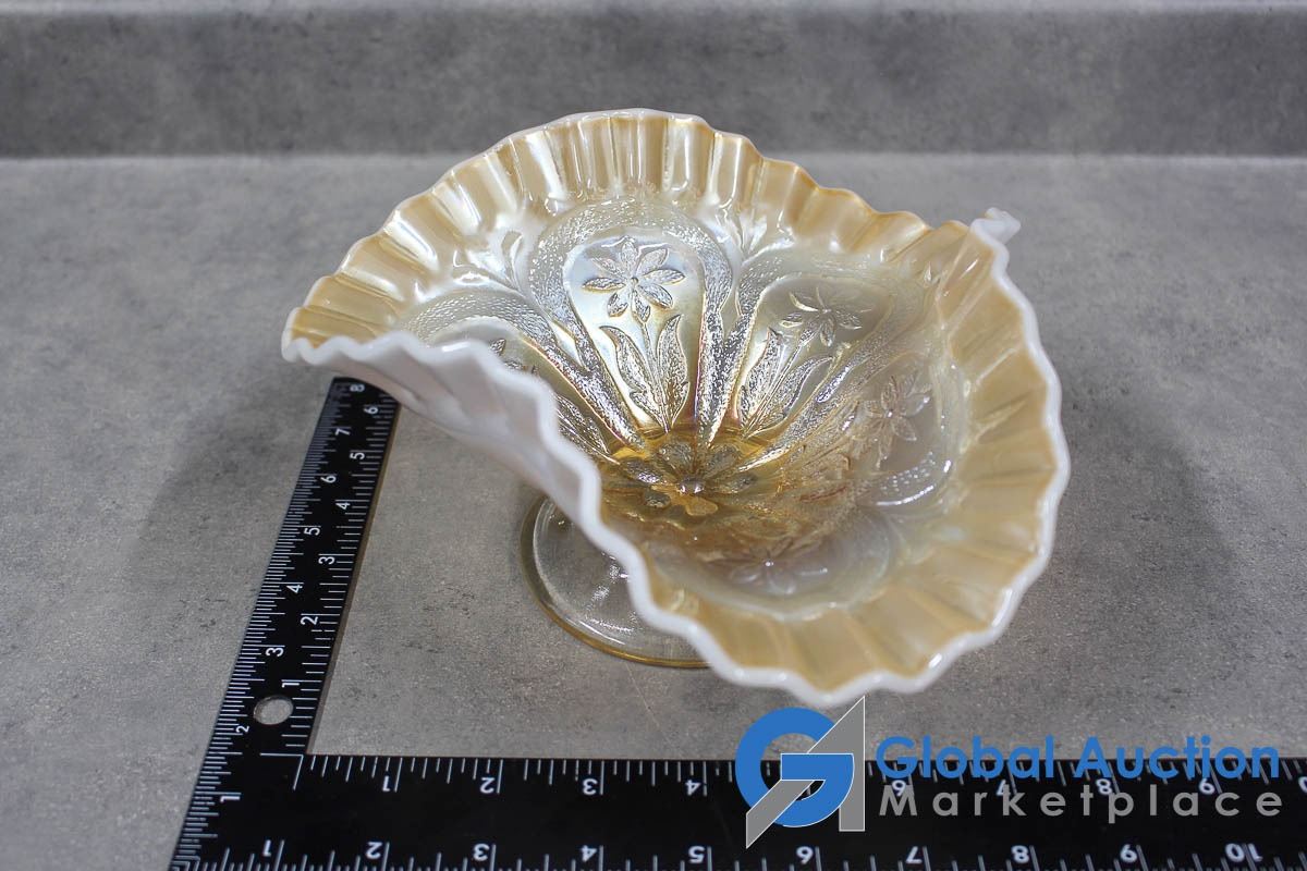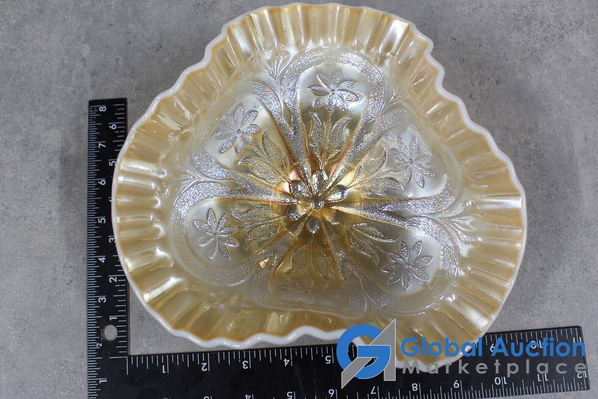"Flowers and Frames" Peach Opalescent Carnival Glass