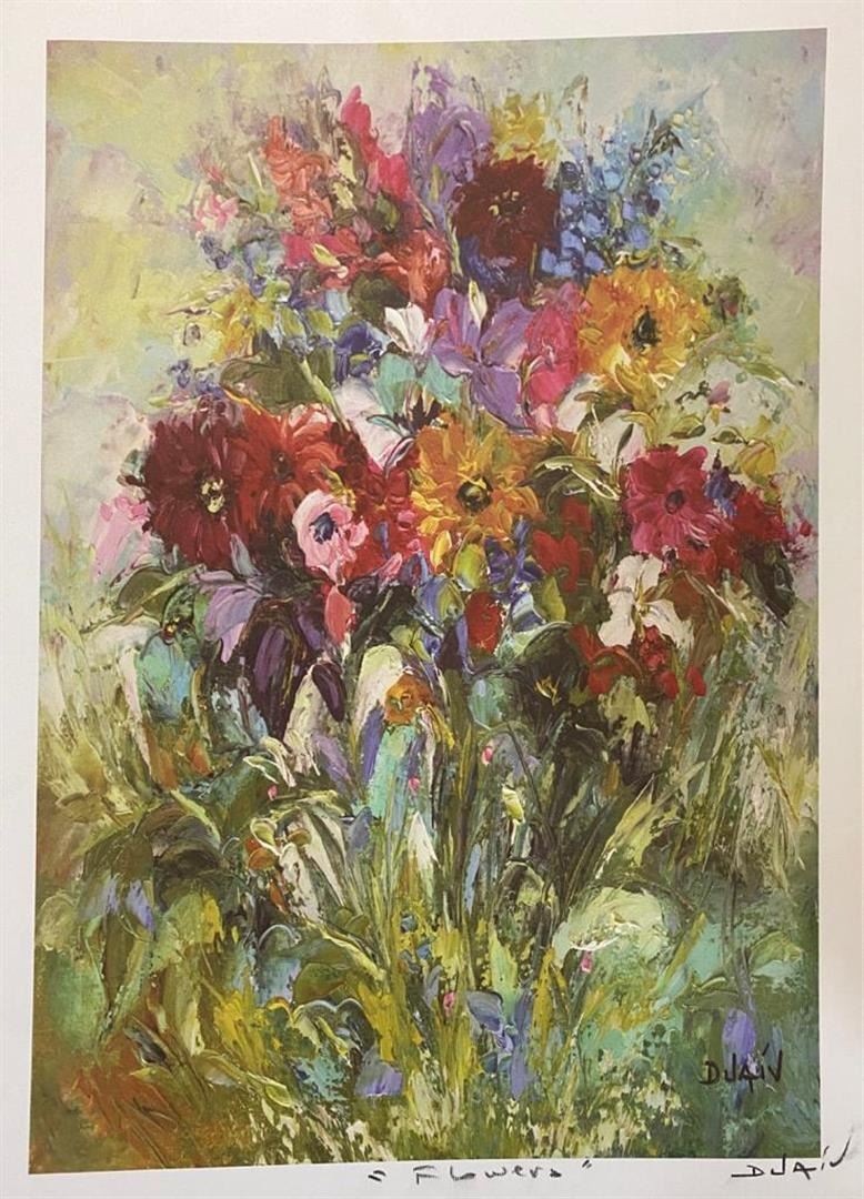 Flowers by Duaiv. Limited Hand Signed Lithograph on Paper. Dimensions: 12.5 x 9. Excellent Condition.