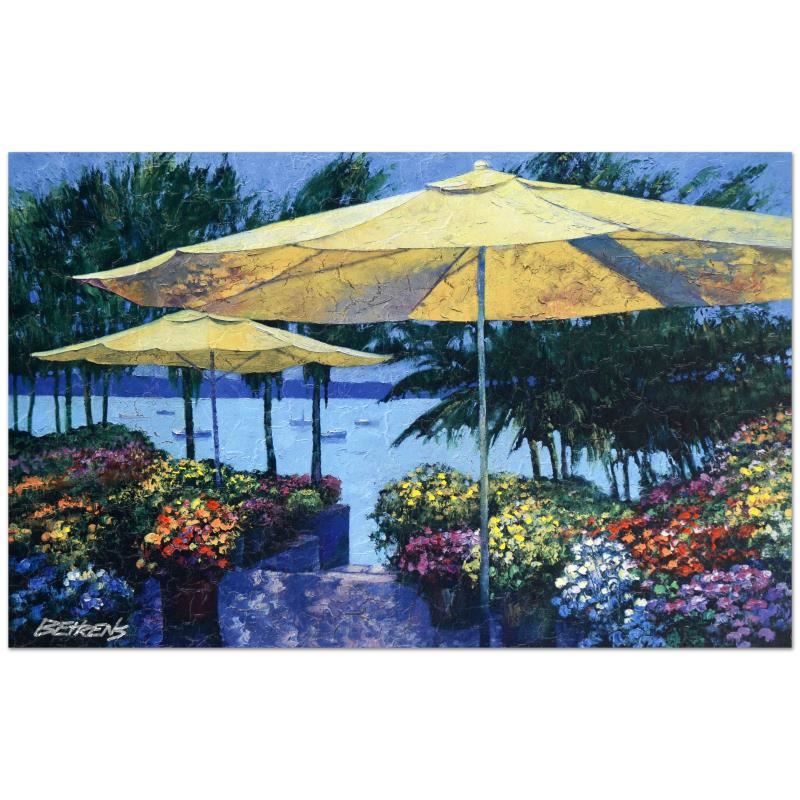 "Flowers by the Sea" is a limited edition hand embellished giclee on canvas with a crackled vecchia finish by Howard Behrens (1933-2014), numbered and hand signed by the artist. Includes Certificate of Authenticity! Measures approx. 17" x 27" (image).