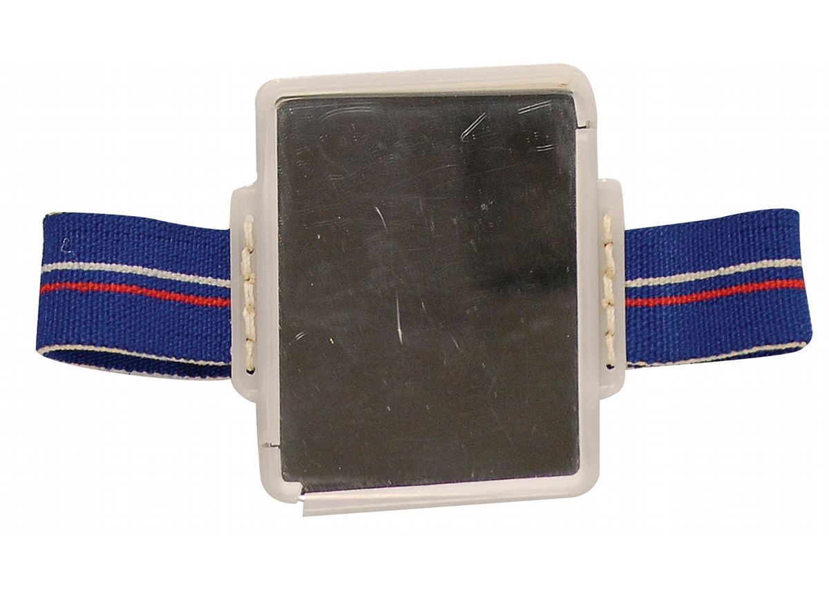 Flown and used mirror #133 worn by cosmonaut Aleksandr Volkov during a four hour and twenty minute space walk outside the Mir Space Station on February 20, 1992, during his 175 day stay aboard the station. Mirror measures 2.25 x 3 and is housed in a simple plastic frame. A multi-colored elastic loop is attached to both sides to be worn over the bulky sleeve of the space suit. Reverse of the mirror is stamped “133,” and signed in blue ballpoint by Volkov. Accompanied by a letter of provenance, in Russian, signed by Volkov, which reads (translated): “Mirror No. 133 used during a space walk. It was worn on the sleeve of the ‘Orlan DMA’ space suit of Mission Commander Volkov during his 4 hour and 20 minute space walk, on 20 Feb 1992.” In fine condition, with several small cracks and separations to plastic frame. The purpose of Volkov’s space walk was to dismantle external experimental equipment and clean camera lenses. The session had been cut short because a fault in a heat exchanger in Volkov's spacesuit. Provenance: Superior Space Memorabilia Auction; Fall 1996.