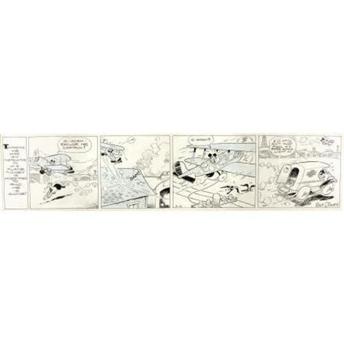 <B>Floyd Gottfredson - Mickey Mouse Daily Comic Strip Original Art, dated 3-16-33 (Walt Disney Enterprises, 1933).</B></I> From the "Mail Pilot" storyline comes this wonderful barnstorming strip, as Mickey takes to the airways. This high-flying daily is drawn in pen and ink, with some blue pencil. This strip has an image area of 26.5" x 5.5", and the art is in Excellent condition.<BR><BR><b>Shipping:</b> Framed - with Glass, Medium (<a target="_blank" href="http://www.heritageauctions.com/common/shipping.php">view shipping information</a>)