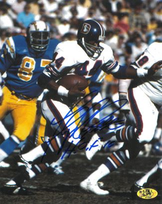 Floyd Little was the 6th selection of the first common AFL-NFL draft. He was the first ever first-round draft pick to sign with the American Football League's Denver Broncos where he was known simply as "The Franchise" for saving the team from certain relocation by forcing the expansion of Mile High Stadium and generating a string of sellouts that lasts today. Little led Professional Football in rushing for the six-year period from 1968 to 1973. He retired as the 7th leading rusher in Professional Football history with 6,323 yards rushing and 54 touchdowns. On August 7, 2010, Little was inducted into the Pro Football Hall of Fame. Floyd Little has hand signed this Denver Broncos TB 8x10 Photo with HOF 10 inscription. MAB Hologram and Certificate of Authenticity from Athlon Sports.