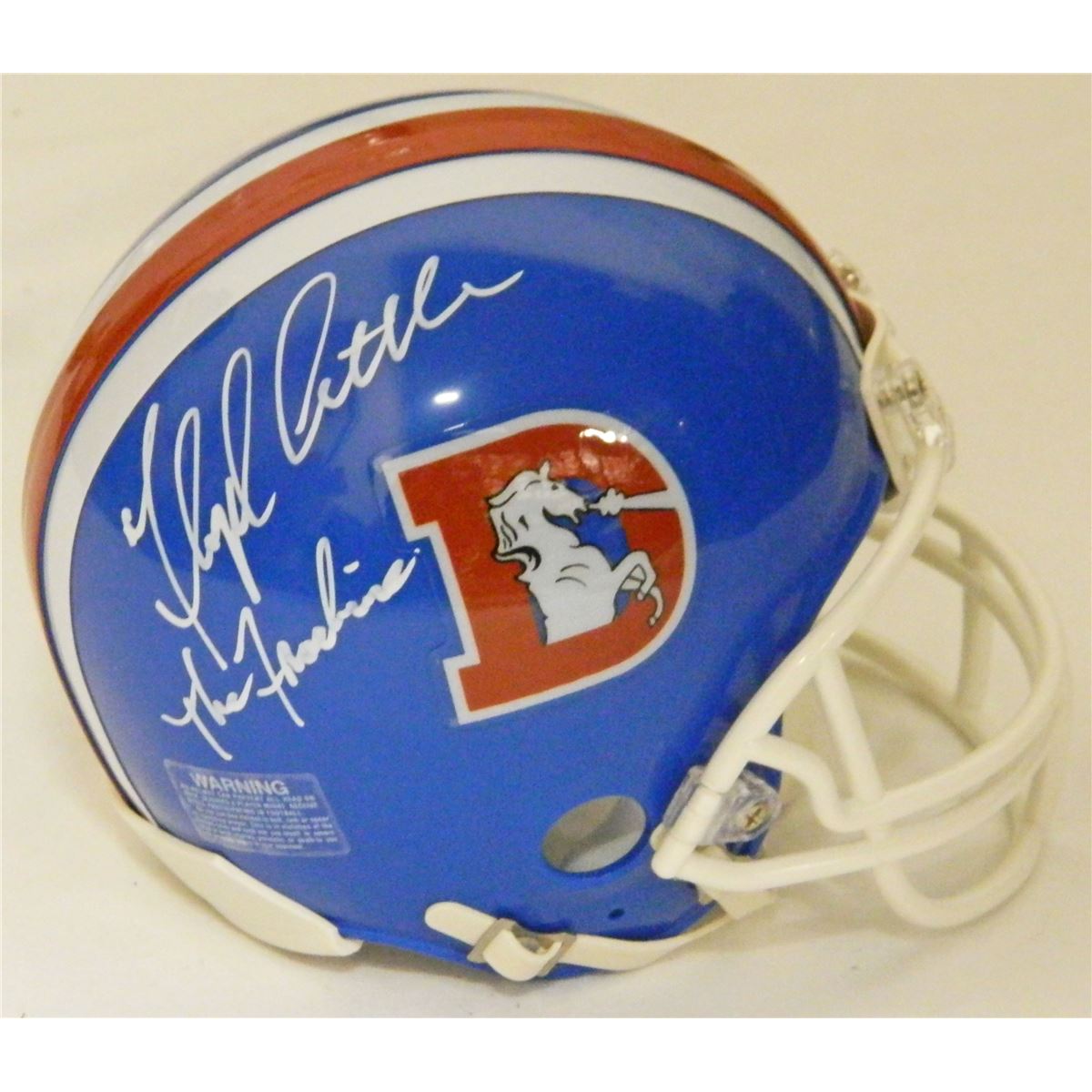 Floyd Little signed Denver Broncos throwback 'D' logo Riddell mini helmet with 'The Franchise' inscription. Item comes with a Schwartz Sports Memorabilia tamper-proof numbered hologram which can be verified online.