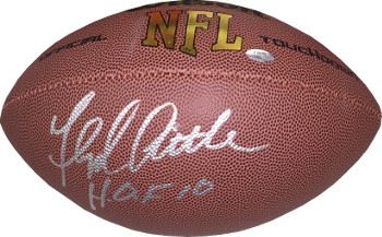Floyd Little was the 6th selection of the first common AFL-NFL draft. He was the first ever first-round draft pick to sign with the American Football League's Denver Broncos where he was known simply as "The Franchise" for saving the team from certain relocation by forcing the expansion of Mile High Stadium and generating a string of sellouts that lasts today. Little led Professional Football in rushing for the six-year period from 1968 to 1973. He retired as the 7th leading rusher in Professional Football history with 6,323 yards rushing and 54 touchdowns. On August 7, 2010, Little was inducted into the Pro Football Hall of Fame. Floyd Little has hand autographed this NFL Wilson Replica Composite Football with HOF 10 inscription. Schwartz Sports Hologram and Certificate of Authenticity from Athlon Sports Collectibles.