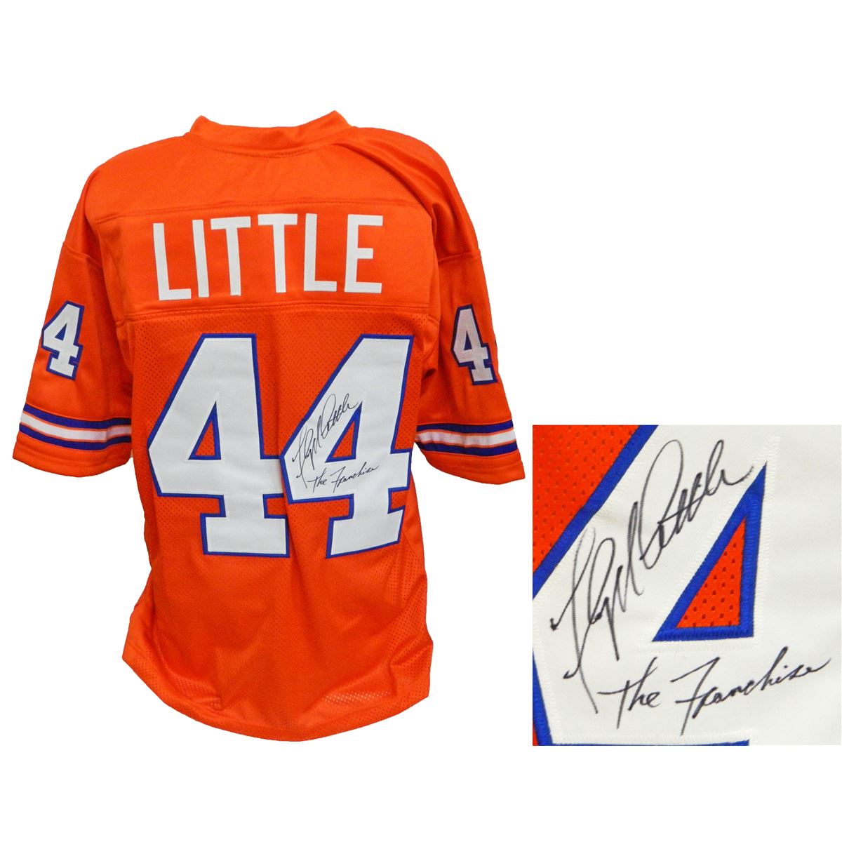 Floyd Little signed orange crush throwback custom football jersey with 'The Franchise' inscription. Item comes with a Schwartz Sports Memorabilia tamper-proof numbered hologram and Certificate of Authenticity which can be verified online.