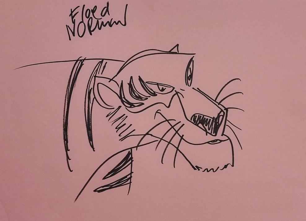 A Floyd Norman drawing on A4 pink paper. Supplied with coa.